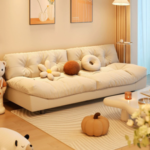 Yunduo ソファ新しいモダンなシンプルなクリームスタイルのリビングルームの小さなアパートストレート列ダブルまたはトリプル怠惰なファブリックソファ