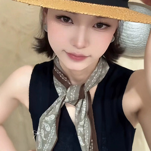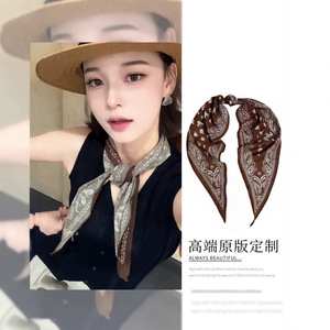 老钱感~气质咖色腰果花丝巾系脖领巾复古时尚高级感配饰绑发发带