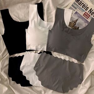 无痕冰丝内衣套装吊带运动无钢圈文胸学生聚拢显胸小背心夏季清凉