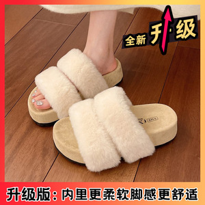 韩版高级感毛毛拖鞋女款外穿2025秋冬新款松糕底拖鞋厚底一字棉拖
