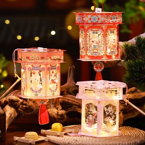 中秋节灯笼儿童手工diy 小兔子手提发光花灯国潮古风六角宫灯挂饰