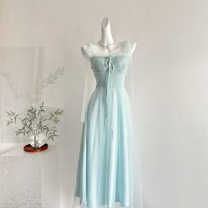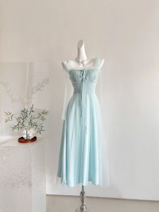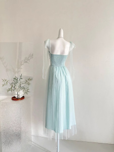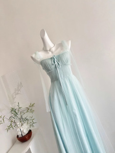 『欣幸』白水女绿野仙踪绿色网纱吊带女夏海边度假氛围气质连衣裙