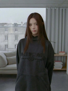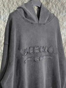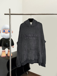 巴黎正确版B家BB字母贴布绣美式复古重工做旧帽衫B潮牌连帽卫衣