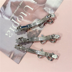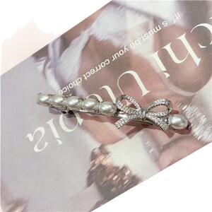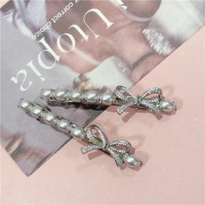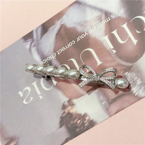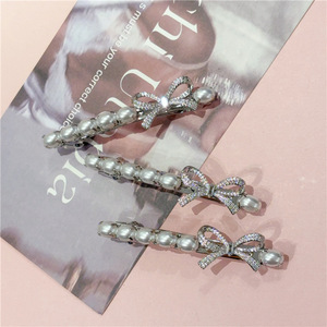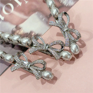 韩国新款法式复古轻奢锆石蝴蝶结珍珠发夹侧边夹刘海马尾夹发饰女