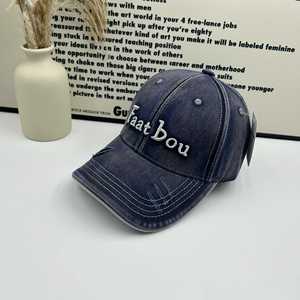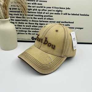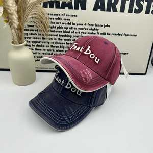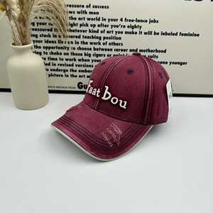 帽子女秋季棒球帽字母刺绣鸭舌帽硬顶大头围休闲帽男2025新款破洞