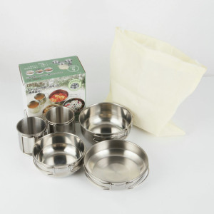 M7S户外304不锈钢杯碗登山便携5件套锅野营野餐烧烤旅行垂钓