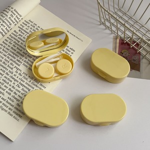 便携小巧带镜子防漏奶油色美瞳盒子收纳双联伴侣盒简约隐形眼镜盒