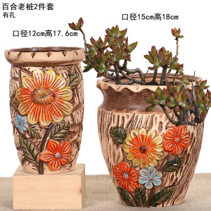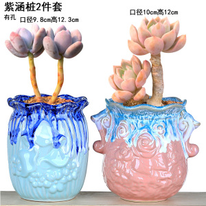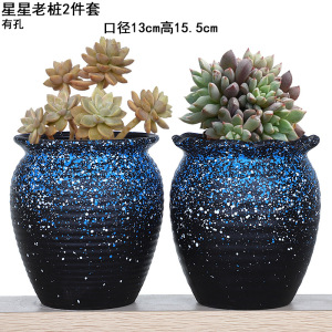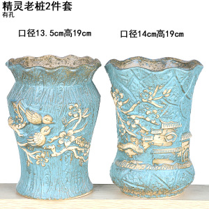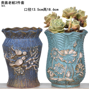 多肉花盆老桩陶瓷大口径肉肉植物花盆法师植物盆创意套装高桩盆