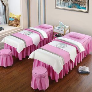 专用按摩推拿美容床罩四件套床单带洞四季理疗床纯色加厚套美容院