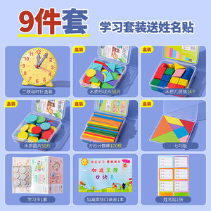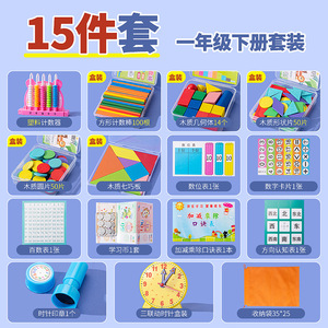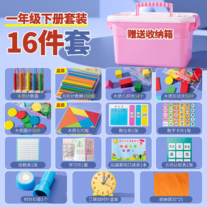 一年级数学教具下册小学七巧板学习用品计数器学具盒套装圆片联动