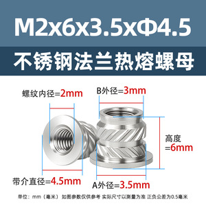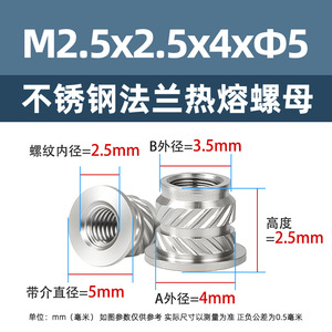 不锈钢法兰热熔螺母M2M2.5斜八字嵌件预埋滚花母法兰面注塑螺母
