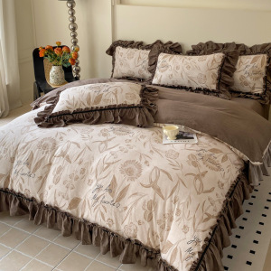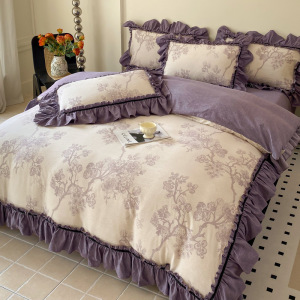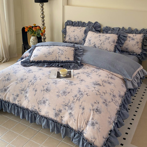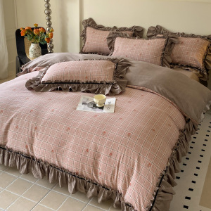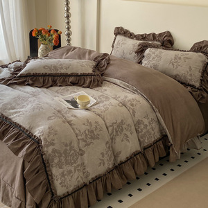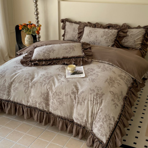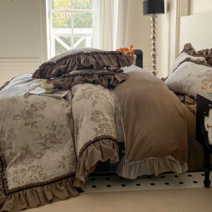 新しいレトロスタイルのハイエンドジャカードウォッシュリネン4点セット秋冬フレンチキルトカバーシーツ寝具