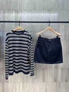 M**O女装针织衫2025秋季新品细支绵羊毛棉纱中空混纺条纹落肩上衣