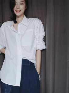 C712法式白色叠穿长袖衬衫外套女春秋新款高级感宽松bf慵懒风休闲