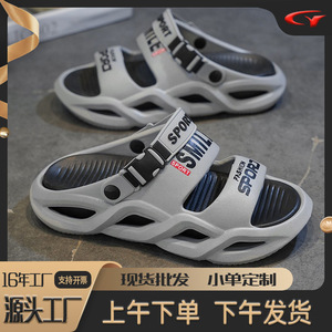 凉鞋夏季新款EVA厚底男士凉鞋户外运动双色一字拖凉拖