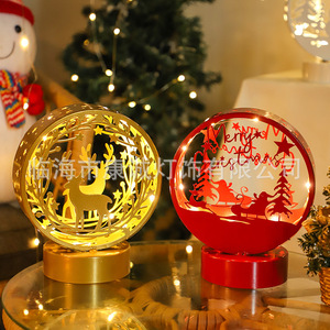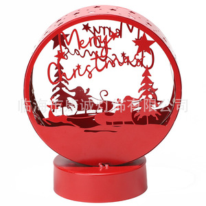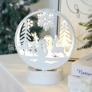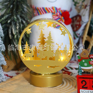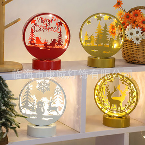 跨境新品铁艺LED圣诞小夜灯镂空发光圣诞节桌面橱窗装饰摆件