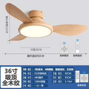 家用吸顶风扇灯新款餐厅静音客厅卧室变频带电一体风扇吊灯H