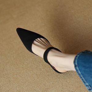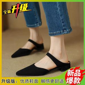 フレンチポインテッドトゥハーフスリッパレディースローヒールSサイズ33ワンラインミュールシューズ2025秋新作ハーフスリッパ