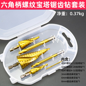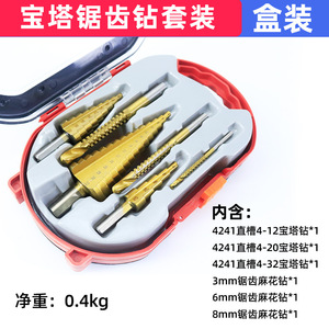 箱入りパゴダドリル、スパイラルステップタワー型ホールエキスパンダー、溝鋸歯状ツイストドリル、ツイストドリルセット