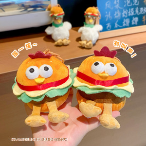 正版咕咕汉堡鸡毛绒公仔钥匙扣趣味解压摇一摇发声玩偶包包挂件