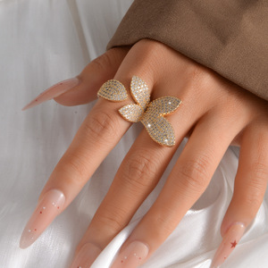 设计感轻奢满钻蝴蝶高级开口戒指女树叶子小众指环手饰百搭食指戒