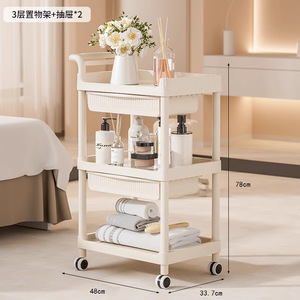 【主图款-奶油白】三层+双抽屉+美容碗(多功能置物 滑轮移动)