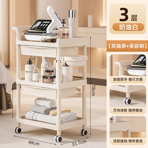 【奶油白】三层+美容碗—无抽屉(多功能置物 滑轮移动)