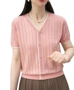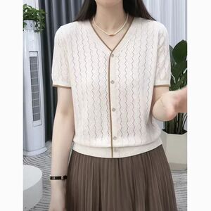 サマーカウンター半袖本物の新しい2025ニットセーターファッショナブルなルーズTシャツ薄手のトップオフホワイト