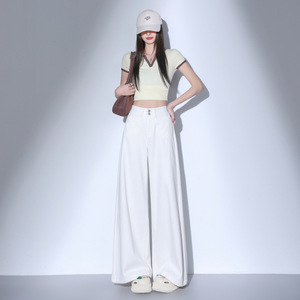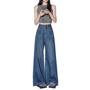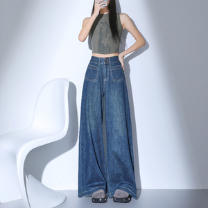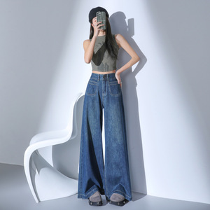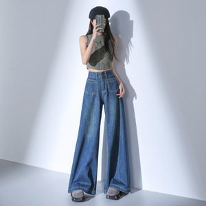 复古阔腿牛仔裤女春秋新款高腰垂感显瘦小个子窄版直筒喇叭裤