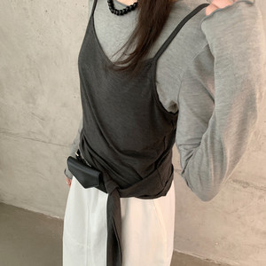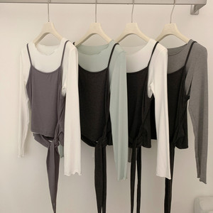 LOVELY 2025秋季韩系简约气质欧尼感两件套吊带背心+打底衫套装