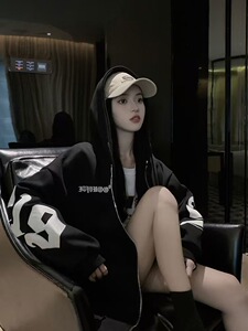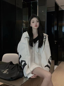 新款秋冬潮牌字母时尚连帽情侣卫衣加绒加厚长袖宽松大码外套女