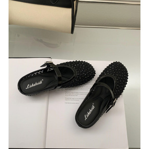 2025 ヨーロッパとアメリカの新しい女性のファッション中空メリージェーンシューズホットダイヤモンドメッシュシューズトレンディなワンラインバックルバレエシューズ