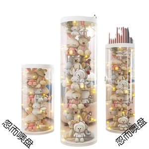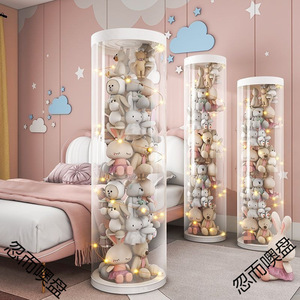 筒公仔收纳毛绒娃娃玩偶布防尘玩具收纳箱透明收纳桶儿童圆柱包邮