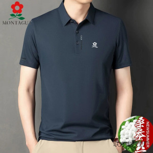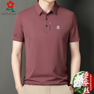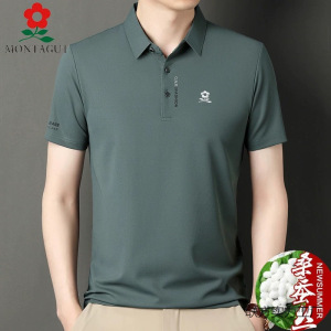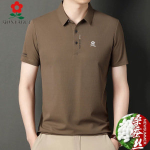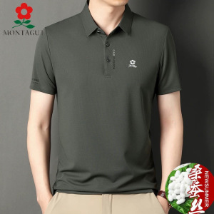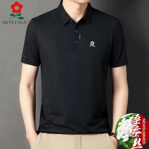 2025同款梦特桑蚕丝短袖T恤男士夏季翻领plol衫中年薄款冰丝体恤T