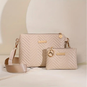 跨境爆款两件套波浪纯色高级感压纹纯色肩带通勤包包女士斜挎包