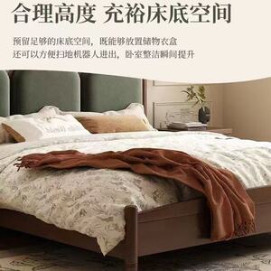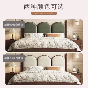 法式复古软包床1.5胡桃色现代简约实木床美式1.8双人主卧大床婚床