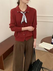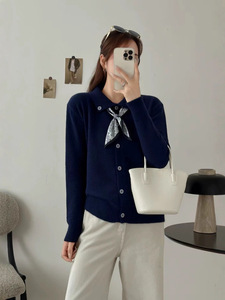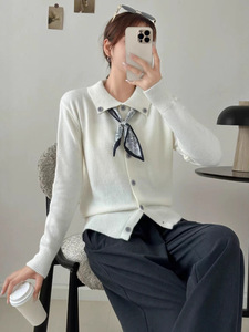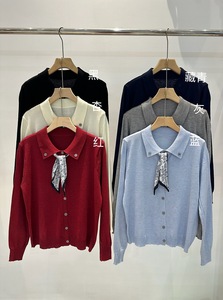 高级感气质独特漂亮拼接丝巾针织开衫早秋新款韩系超好看宽松上衣