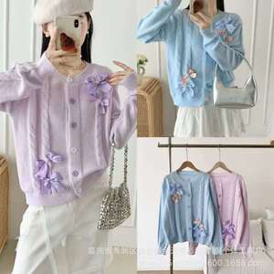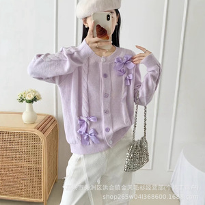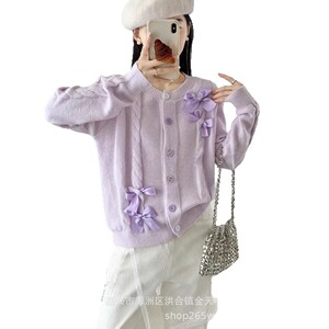 秋と冬の新しい暖色のリボンアクセサリー婦人服カジュアルスタイル無地気質日本製ニットトップセーター