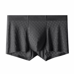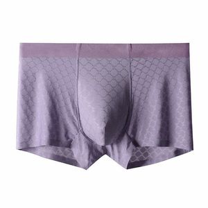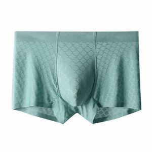速乾性アイスシルクシームレスジャカードメンズ下着夏薄い5Aグレード抗菌スポーツ通気性ミッドウエストボクサーパンツ