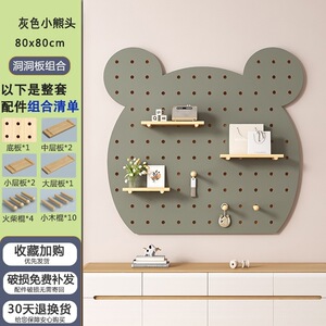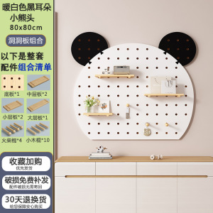 定实木洞洞板挂板墙上装饰隔板置物架书桌背景墙展示架收纳挂架