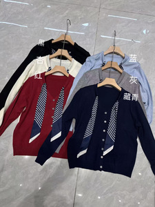 欧货设计感丝巾V领冰丝针织衫女夏装新款休闲洋气长袖防晒上衣潮