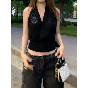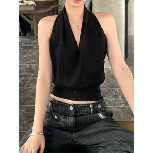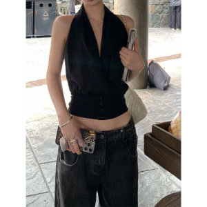 テンセルリネン V ネックホルターネックウエスト痩身ベスト女性の夏の純粋な欲望ホットガールセクシー