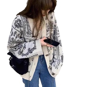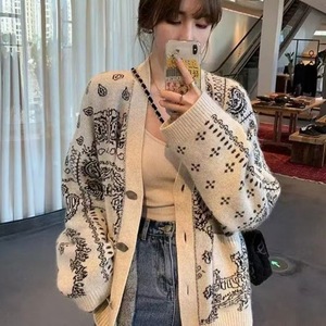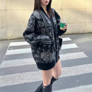 慵懒风提花休闲宽松毛衣外套女士复古高级感软糯秋冬新款针织开衫