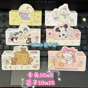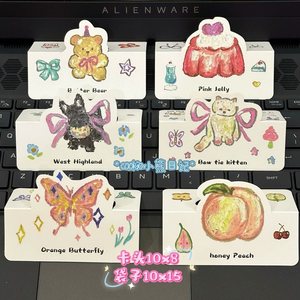 5つの石膏人形動物包装材折りたたみDIYジュエリーカードヘッド10枚の紙かわいいx1フラットポケット
