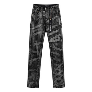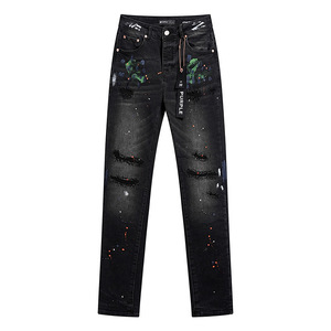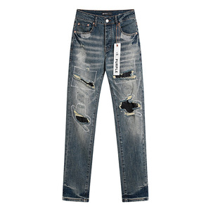 パープルブランドマイクロストレッチジーンズレトロダメージ加工リッピングリッピングデニムパンツ在庫卸売
