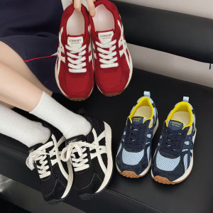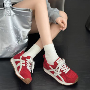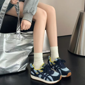 真皮网面透气德训老爹鞋女秋2025爆款休闲慢跑轻便运动拼色阿甘鞋