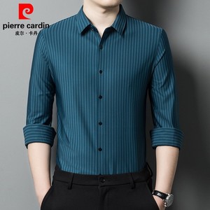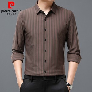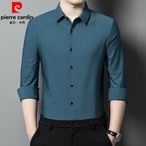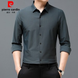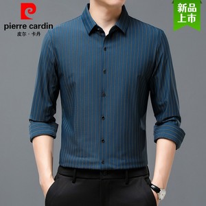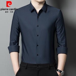 ピエールカルダン マルベリーシルクシャツ メンズ 長袖 ノーアイロン ビジネス カジュアル ストライプ シルク ハイエンド ドレープ 大きいサイズ シャツ