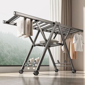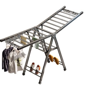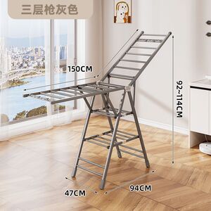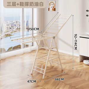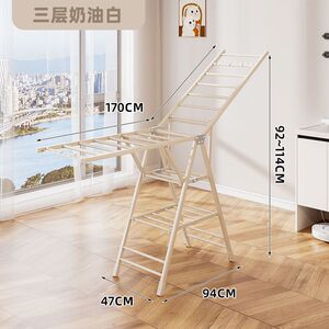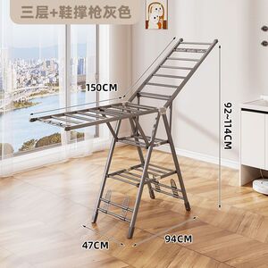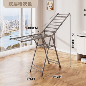 免安装可折叠晾衣格架落地多功能伸缩衣帽架阳台落地式双杆衣服架