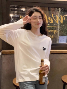 重磅240克纯棉爱心T恤衫刺绣女久川情侣装长袖玲保打底男外贸