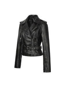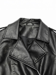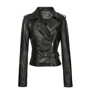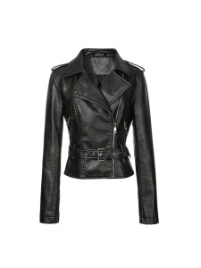 跨境女士PU机车皮衣翻领多拉链可调腰带现货直供Women's coat